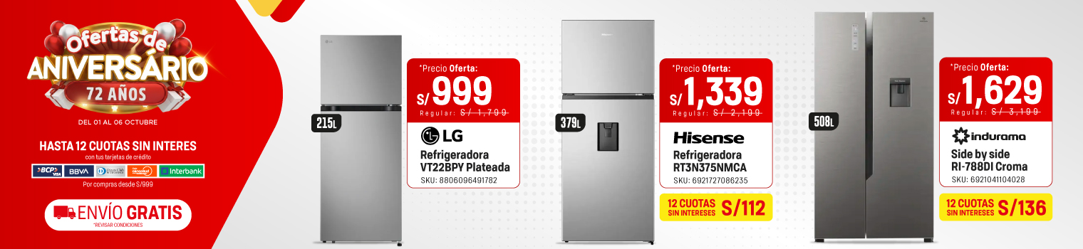 Envío gratisHasta 12 Cuotas sin intereses-49%Refrigeradora Indurama Side By Side 508L RI-788DI Croma S/ 3,199.00S/ 1,629.00Agregar al carrito